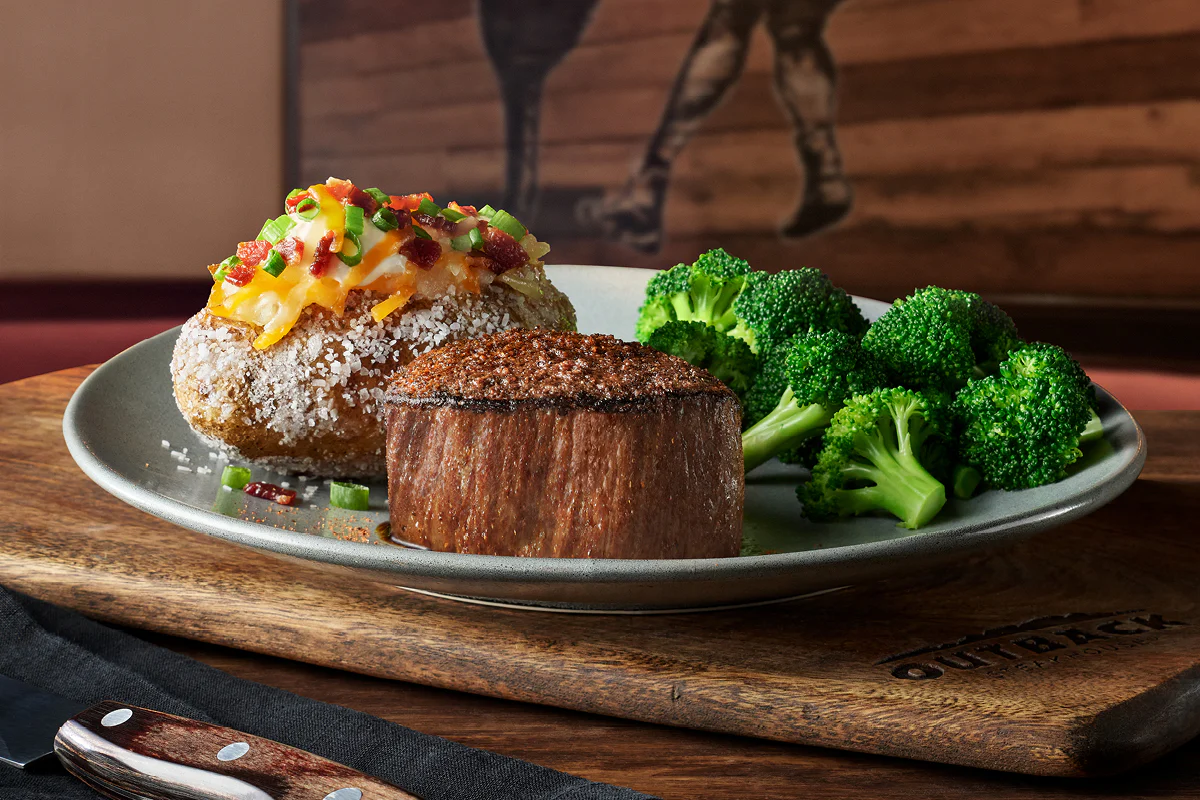 Our signature center-cut sirloin with 1/2 rack Outback Ribs. Served with two freshly made sides.