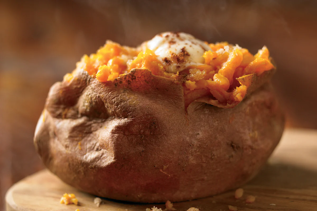 Topped with sour cream, bacon, green onions, Monterey Jack and Cheddar cheese. Serves 4 - 6.