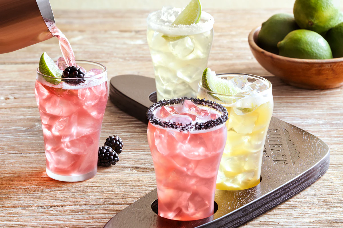 A boomerang flight of 4 'Ritas made with Sauza® Gold Tequila, our proprietary house margarita, blackberry, mango and watermelon